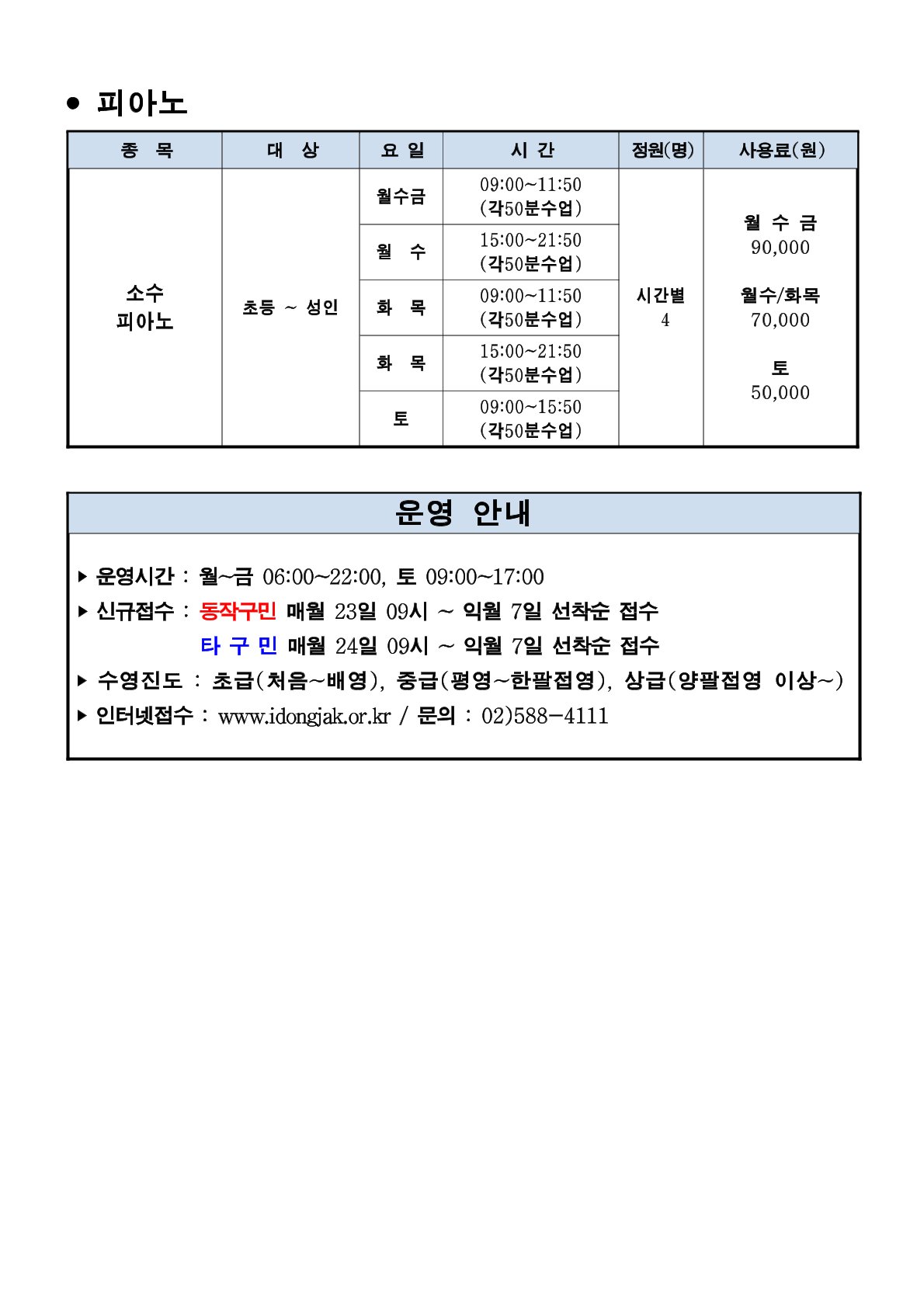 사당문화회관 사당문화회관 2월 프로그램 및 회원모집 안내 작성자 동작구민체육센터 작성일 2024년 1월 15일 8시 31분 25초 조회 677 0001.jpg [ Size : 272.12KB , Down : 519 ] 미리보기 다운로드 0002.jpg [ Size : 180.56KB , Down : 515 ] 미리보기 다운로드 0003.jpg [ Size : 149.83KB , Down : 516 ] 미리보기 다운로드 목록보기