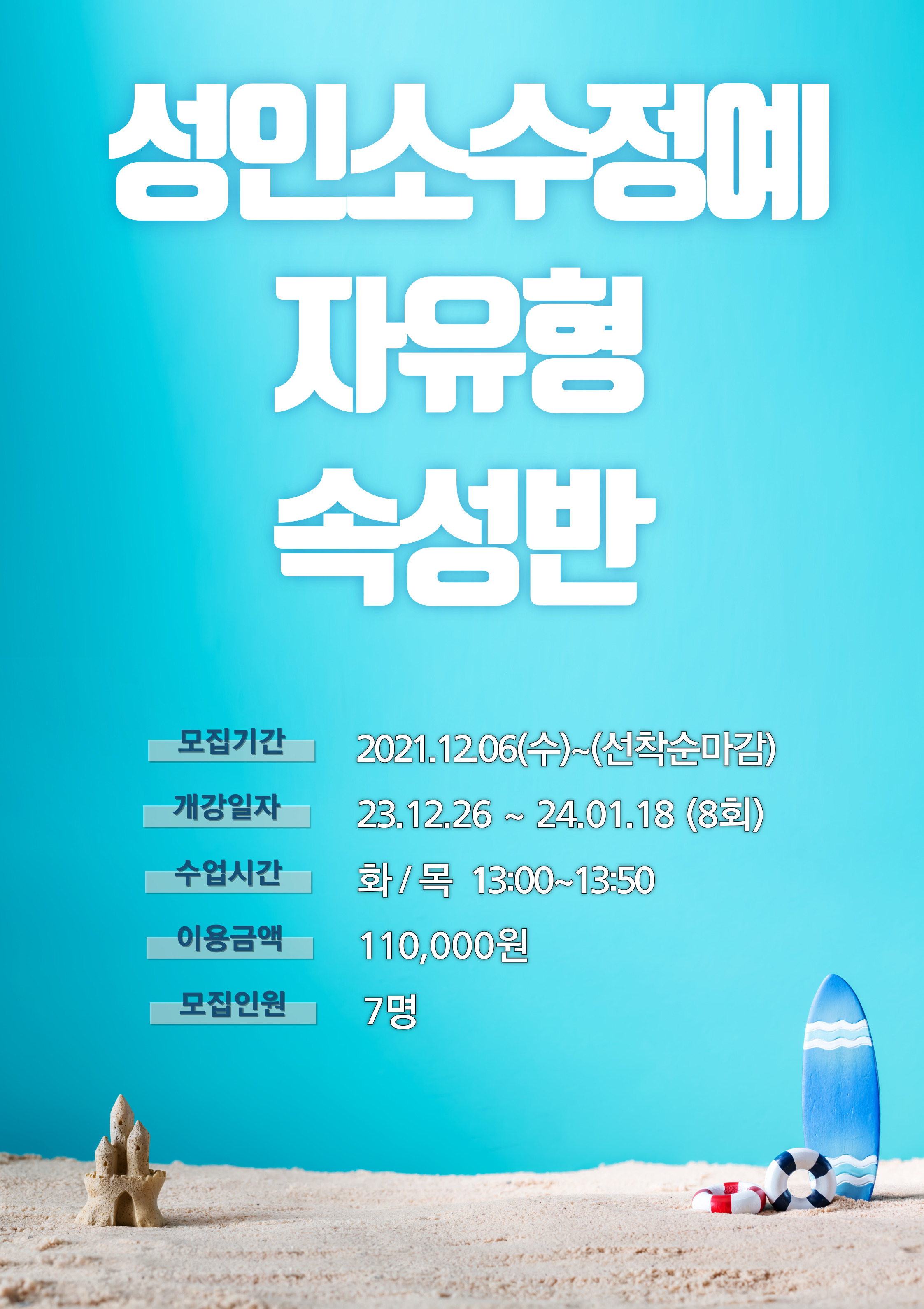 흑석체육센터 흑석체육센터 성인소수정예 자유형 속성반 안내 작성자 흑석체육문화센터 작성일 2023년 12월 5일 14시 53분 8초 조회 560 제목을-입력해주세요_-001 (2).jpg [ Size : 876.67KB , Down : 361 ] 미리보기 다운로드 목록보기