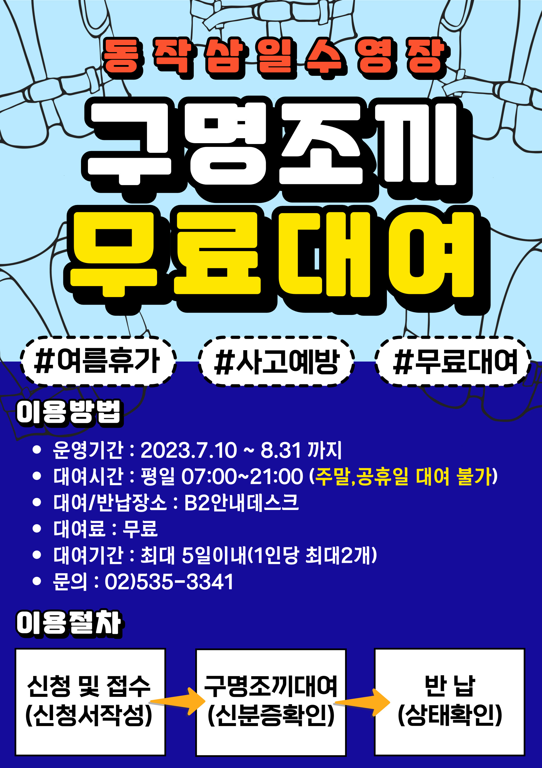 삼일수영장 동작삼일수영장 구명조끼 무료대여 안내 작성자 삼일수영장 작성일 2023년 7월 6일 14시 2분 49초 조회 801 구명조끼 무료 대여.jpg [ Size : 734.08KB , Down : 688 ] 미리보기 다운로드 목록보기