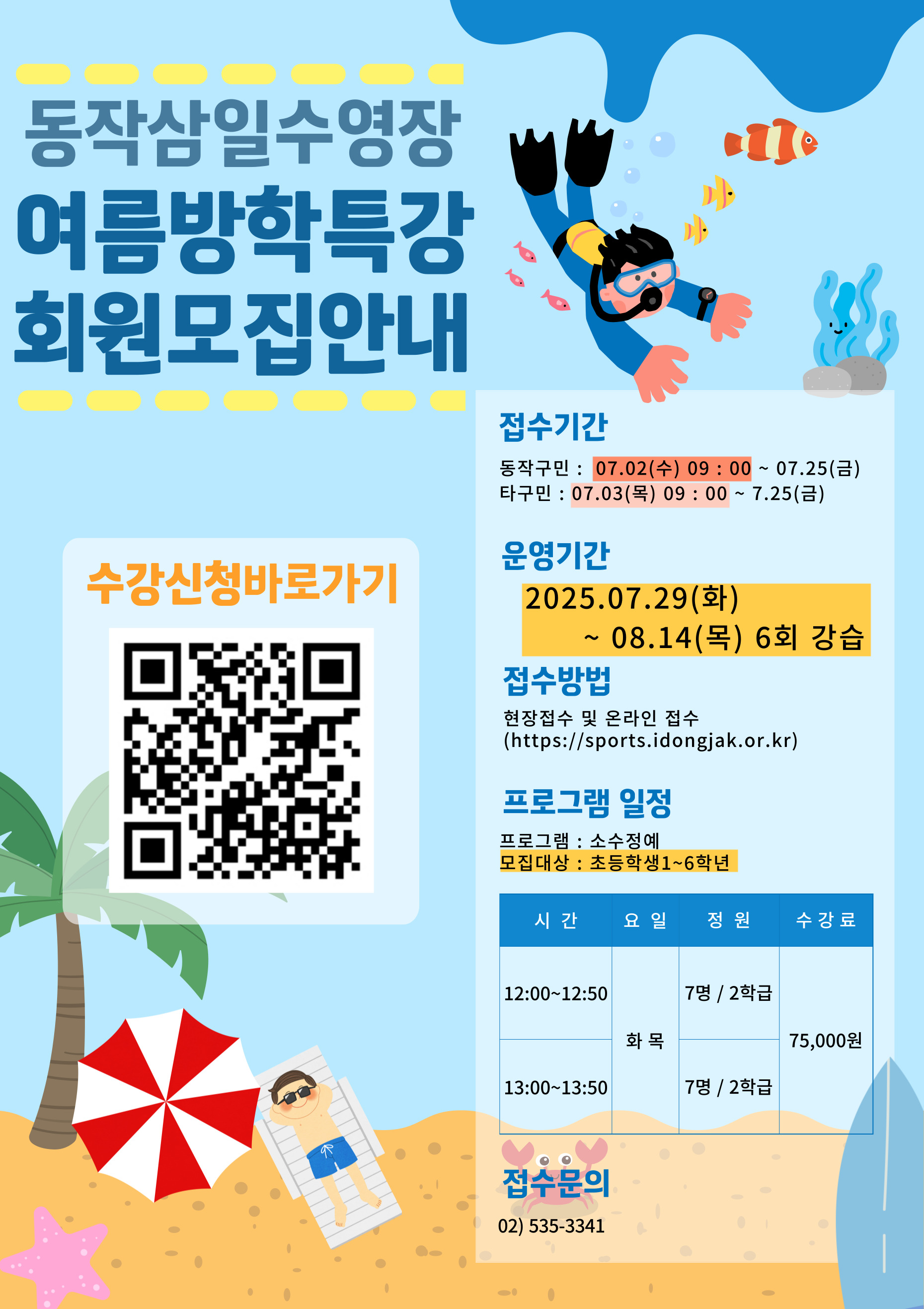 삼일수영장 동작삼일수영장 7월 휴관일 및 첩수 일정 안내 작성자 동작구민체육센터 작성일 2025년 6월 26일 11시 5분 12초 조회 514 방특1.jpg [ Size : 664.12KB , Down : 240 ] 미리보기 다운로드 목록보기