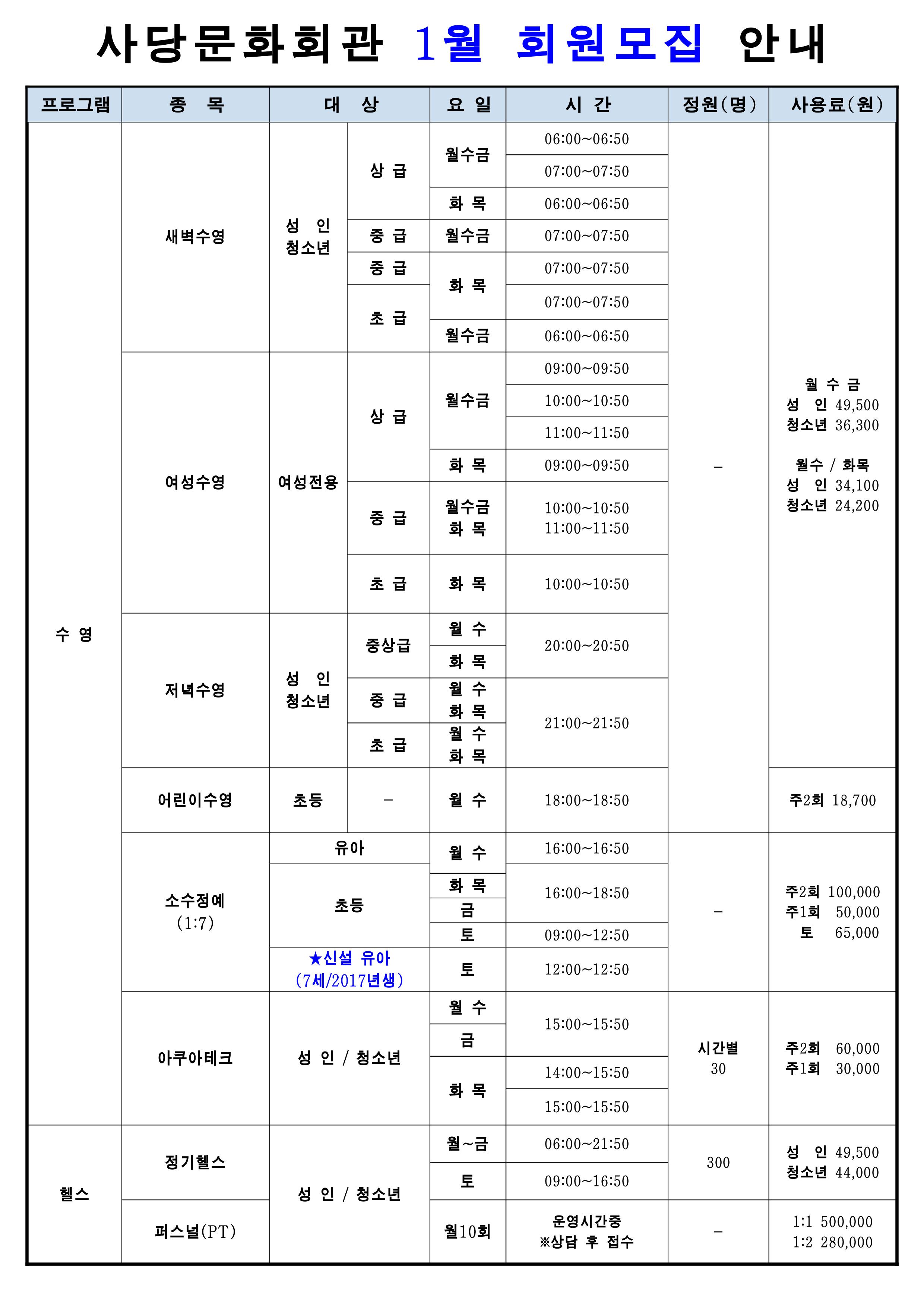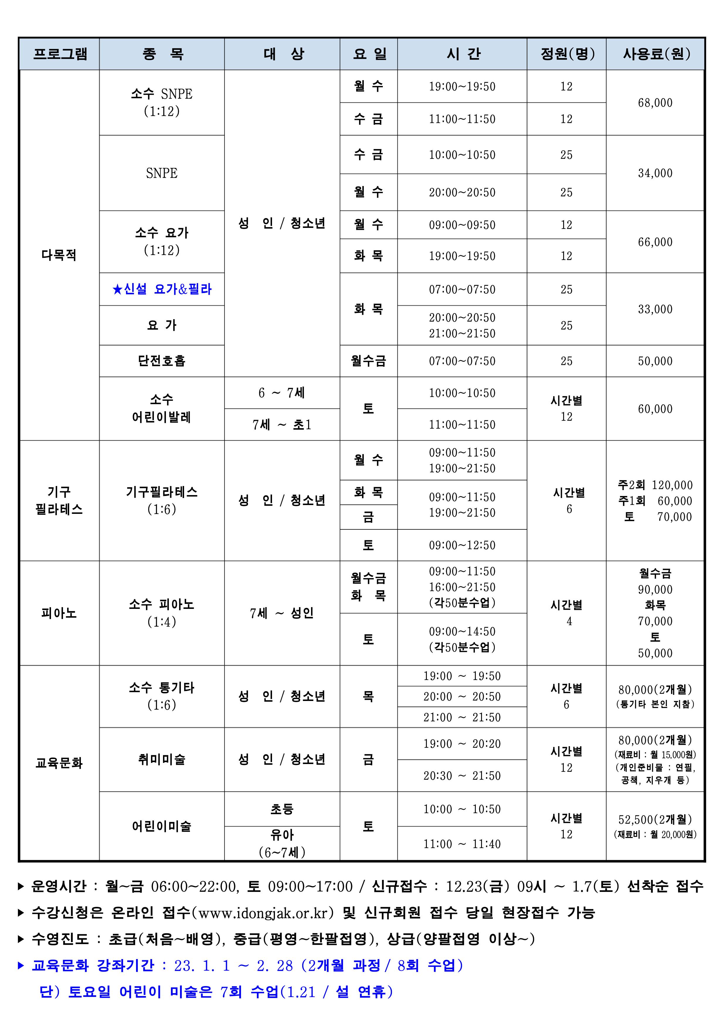 사당문화회관 사당문화회관 2023년 1월 회원모집 안내 작성자 동작구민체육센터 작성일 2022년 12월 20일 15시 41분 46초 조회 878 0001.jpg [ Size : 540.59KB , Down : 523 ] 미리보기 다운로드 0002.jpg [ Size : 635.35KB , Down : 477 ] 미리보기 다운로드 목록보기