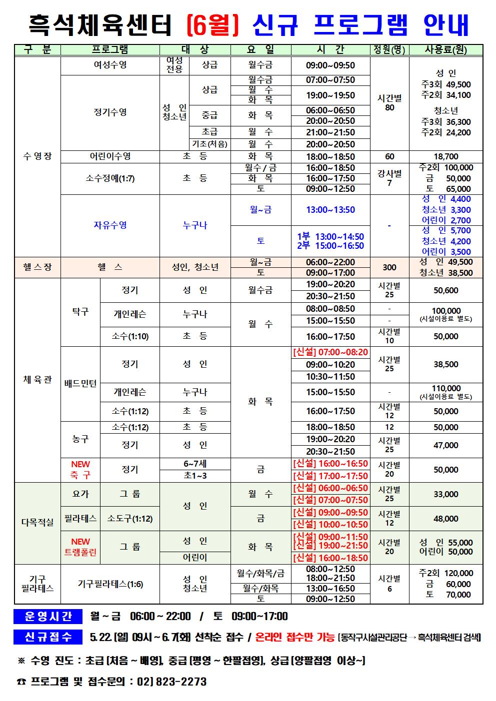 흑석체육센터 흑석체육센터 (6월) 프로그램 안내 작성자 흑석체육문화센터 작성일 2022년 5월 13일 12시 51분 38초 조회 1,067 6월+프로그램+안내(흑석)+최종001.jpg [ Size : 262.1KB , Down : 507 ] 미리보기 다운로드 목록보기