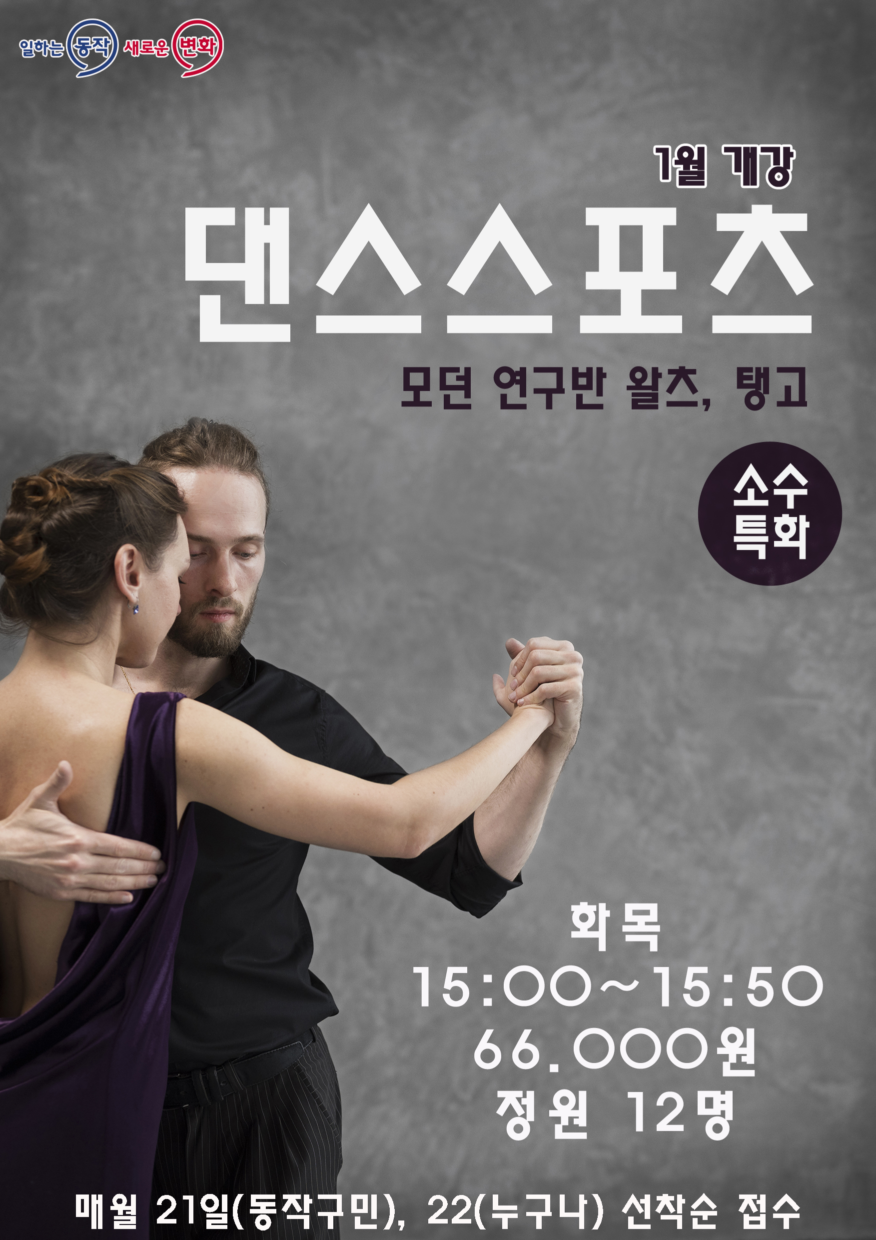 동작구민체육센터 동작구민체육센터 다목적 1월개강 프로그램 안내 작성자 동작구민체육센터 작성일 2023년 12월 15일 16시 46분 56초 조회 691 새벽 다이어트댄스 copy.JPG [ Size : 1.21MB , Down : 413 ] 미리보기 다운로드 댄스스포츠.jpg [ Size : 2.06MB , Down : 469 ] 미리보기 다운로드 라인댄스(영상반) copy.JPG [ Size : 1.29MB , Down : 430 ] 미리보기 다운로드 목록보기