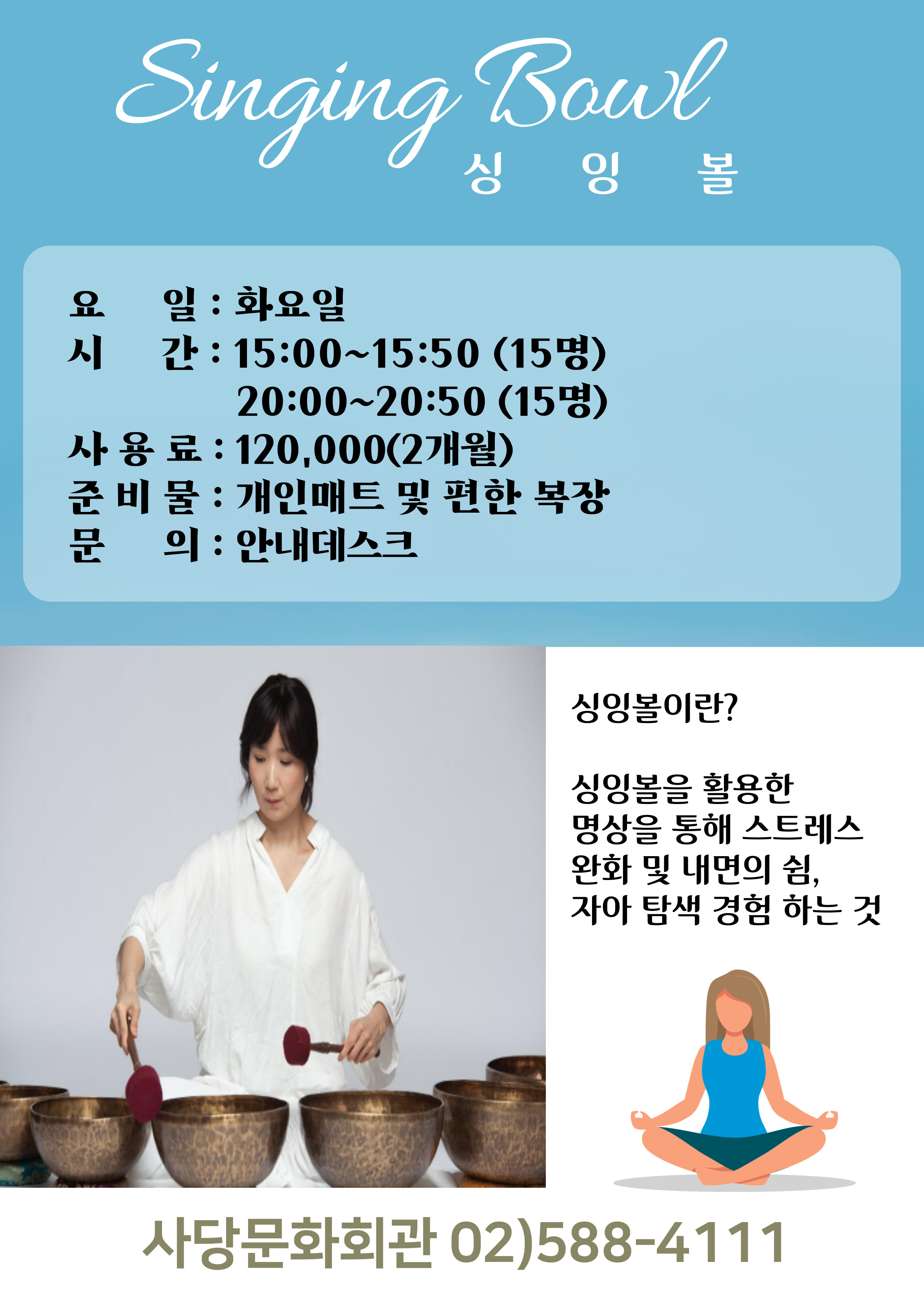 사당문화회관 사당문화회관 싱잉볼 회원모집 안내 작성자 동작구민체육센터 작성일 2024년 6월 24일 14시 54분 8초 조회 642 싱잉볼(정규).jpg [ Size : 790.48KB , Down : 321 ] 미리보기 다운로드 목록보기