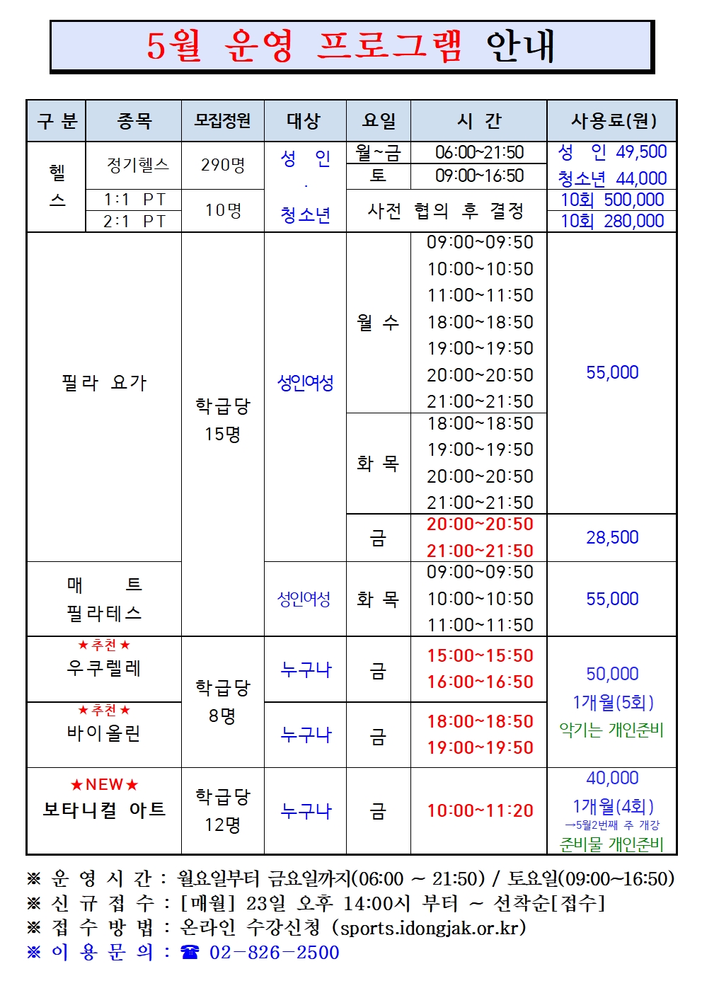 상도스포츠클럽 상도스포츠클럽 5월 프로그램 및 회원모집 안내 작성자 상도스포츠클럽 작성일 2025년 4월 9일 13시 0분 36초 조회 515 5월 프로그램 안내(상도스포츠클럽)001.jpg [ Size : 601.48KB , Down : 244 ] 미리보기 다운로드 목록보기