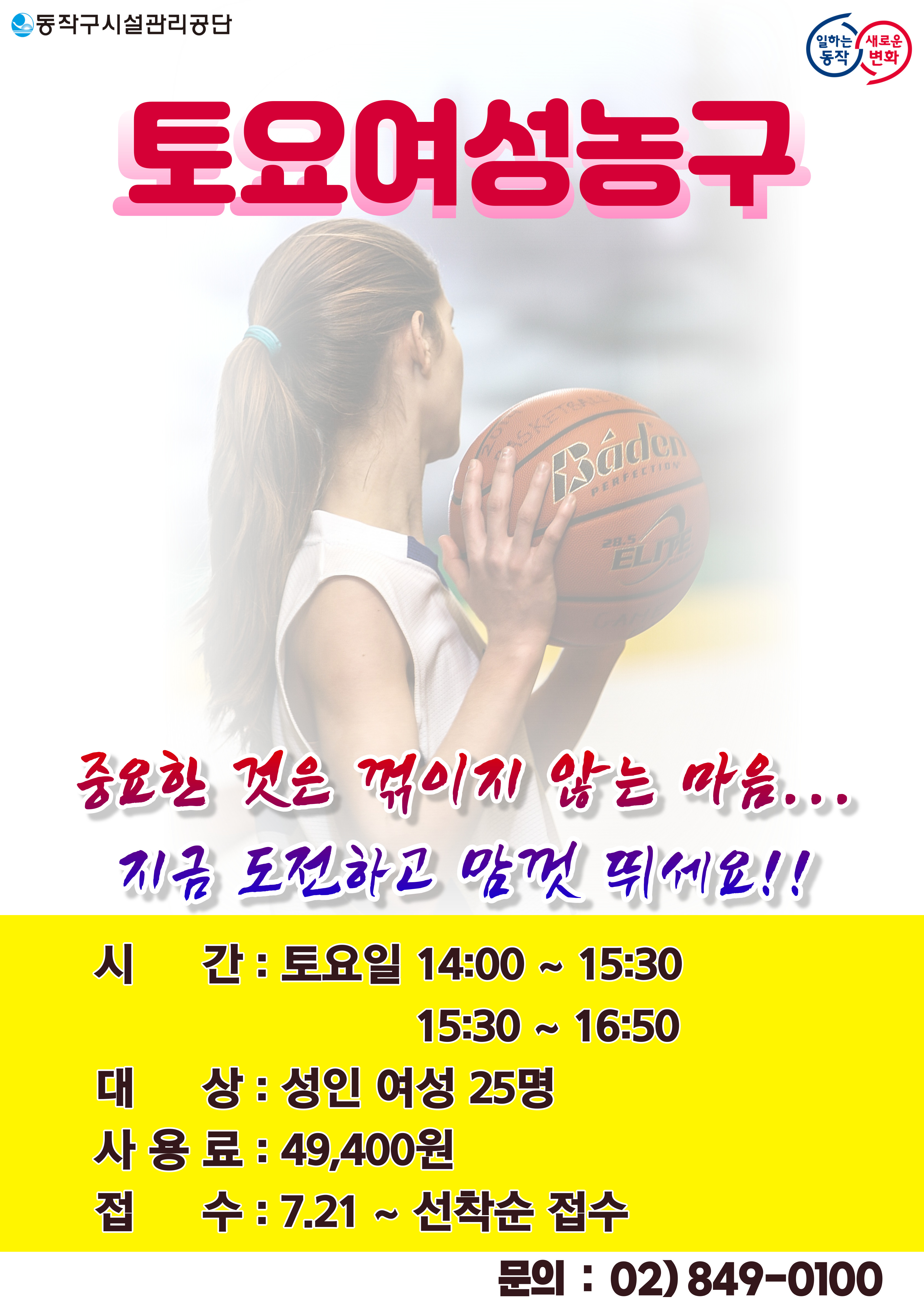 동작구민체육센터 동작구민체육센터 토요여성농구 안내 작성자 사당문화회관 작성일 2023년 7월 14일 10시 59분 31초 조회 737 여성농구홍보물-001 (1).jpg [ Size : 1.68MB , Down : 202 ] 미리보기 다운로드 목록보기