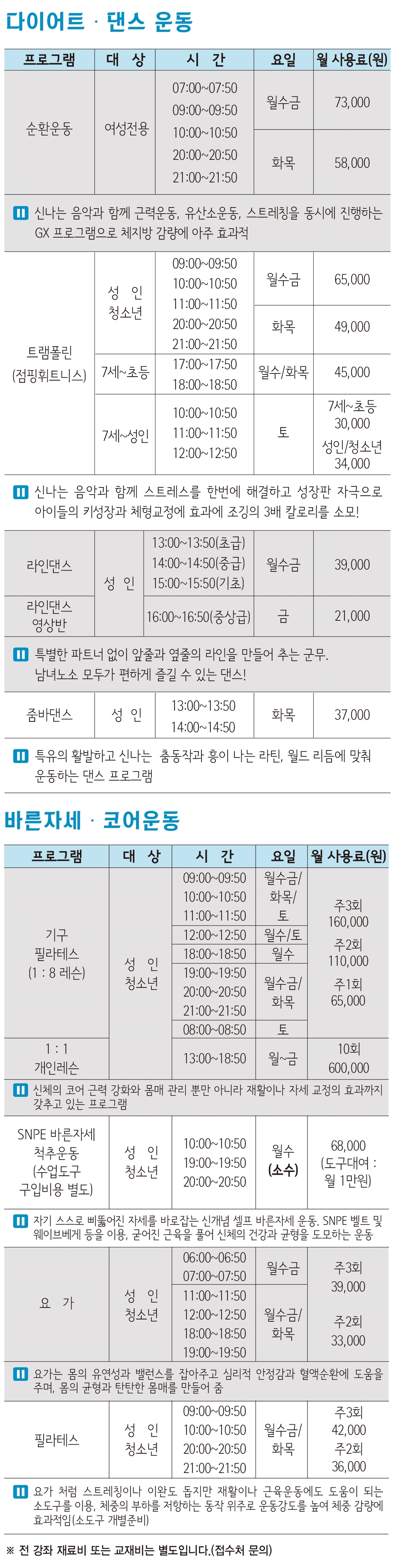 사당종합체육관 사당종합체육관 프로그램 안내(6월~8월)