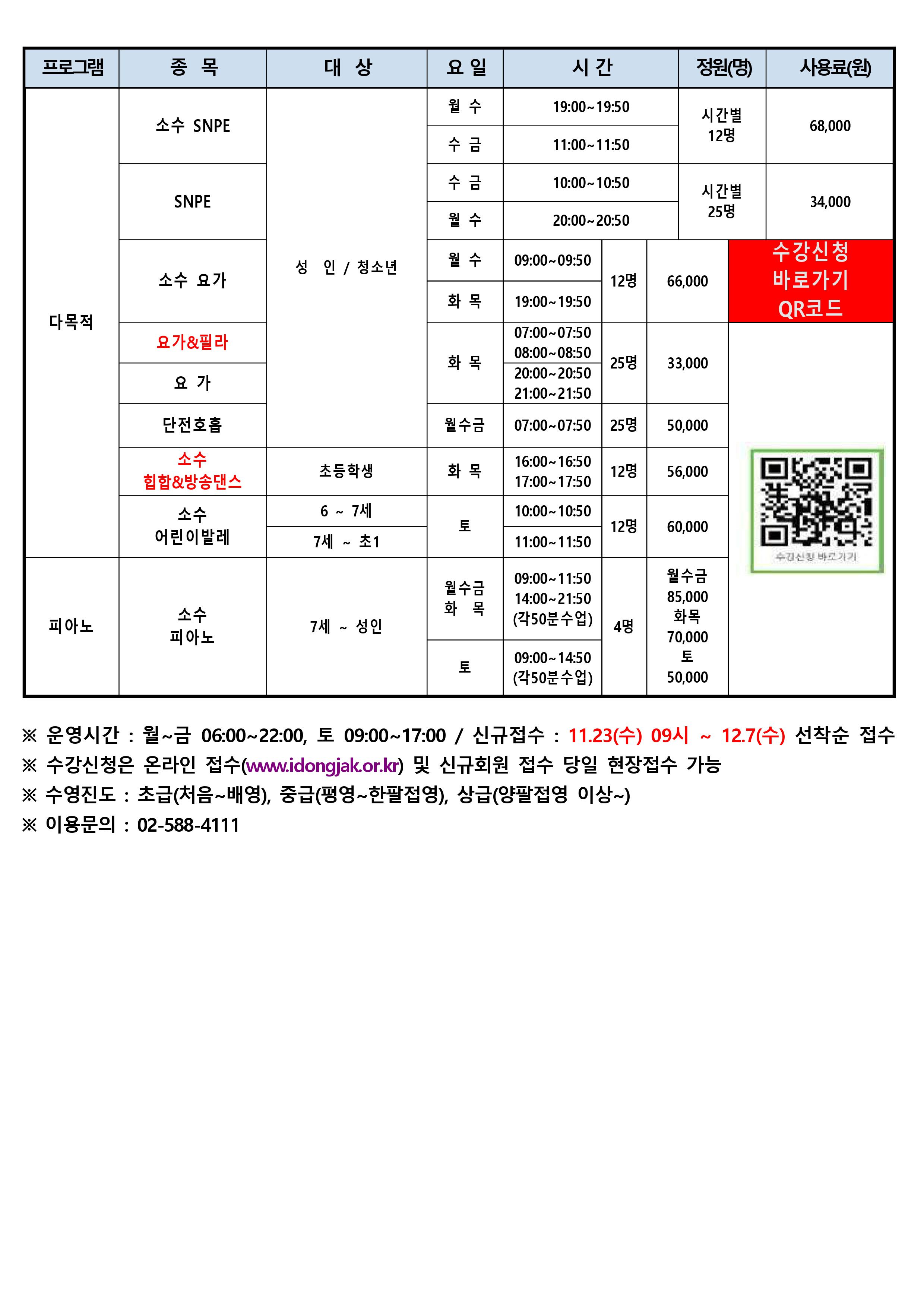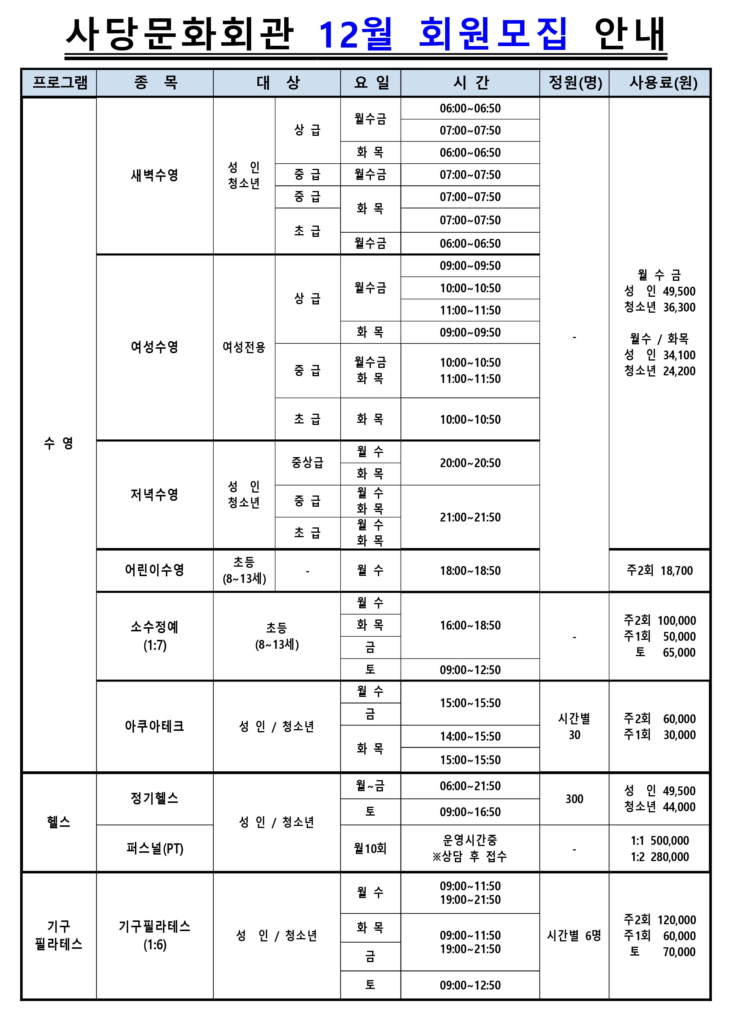 사당문화회관 사당문화회관 12월 프로그램 안내 작성자 동작구민체육센터 작성일 2022년 11월 21일 16시 37분 16초 조회 926 0001.jpg [ Size : 604.92KB , Down : 733 ] 미리보기 다운로드 0002.jpg [ Size : 520.81KB , Down : 711 ] 미리보기 다운로드 목록보기