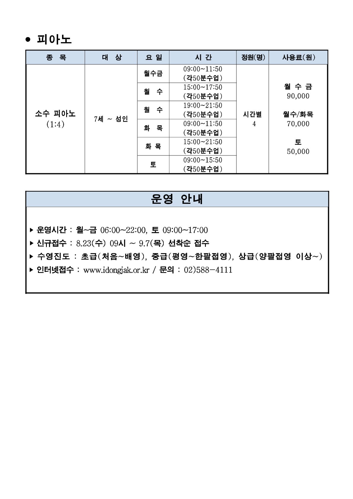 사당문화회관 사당문화회관 9월 프로그램 및 회원모집 안내 작성자 동작구민체육센터 작성일 2023년 8월 23일 19시 41분 16초 조회 827 0002.jpg [ Size : 216.81KB , Down : 431 ] 미리보기 다운로드 0003.jpg [ Size : 144.01KB , Down : 438 ] 미리보기 다운로드 0001.jpg [ Size : 259.04KB , Down : 773 ] 미리보기 다운로드 목록보기