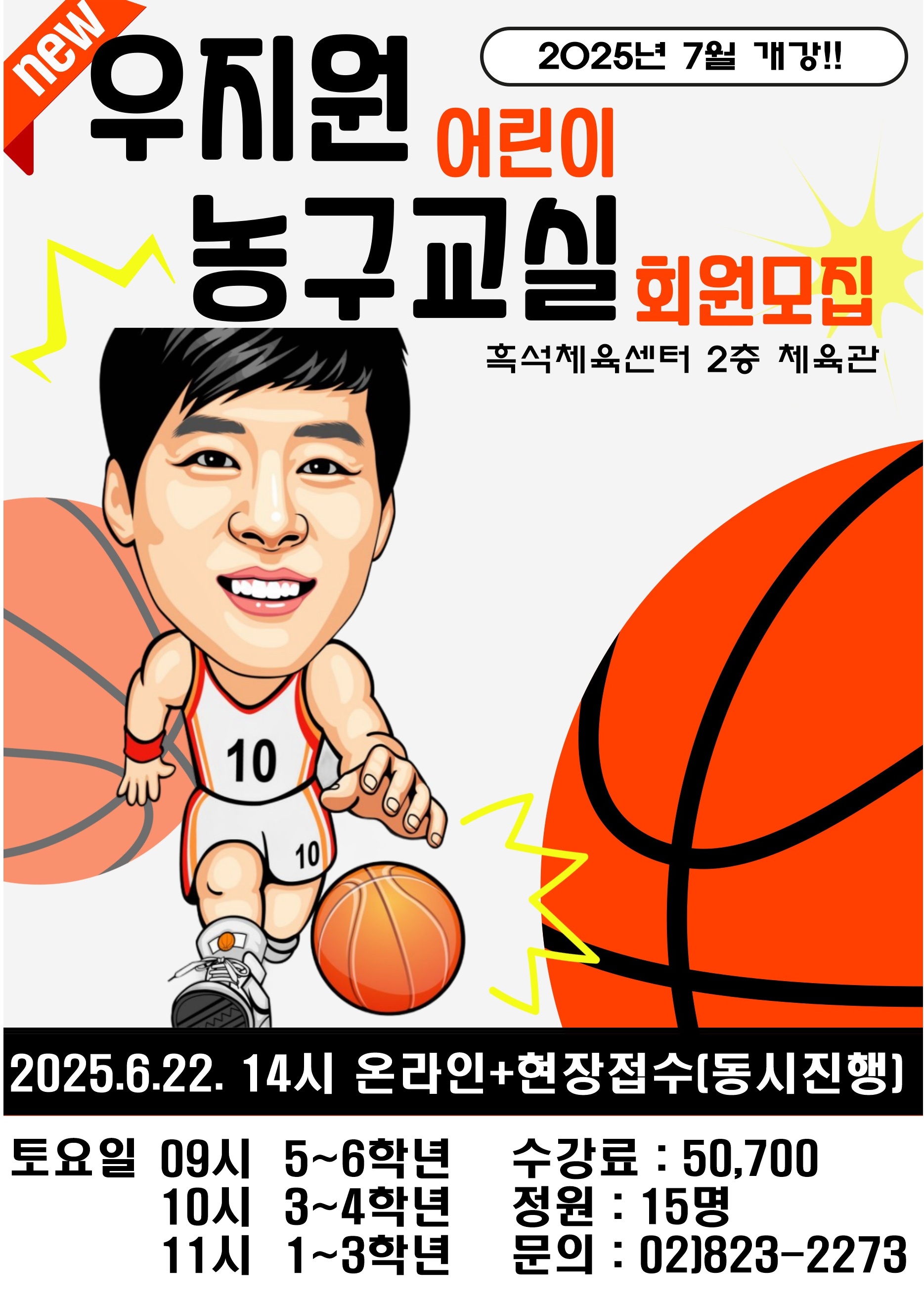 흑석체육센터 흑석체육센터 7월 우지원 어린이 농구교실 회원모집 안내 작성자 동작구민체육센터 작성일 2025년 6월 9일 20시 4분 31초 조회 654 우지원 홍보물.jpg [ Size : 725.1KB , Down : 271 ] 미리보기 다운로드 목록보기