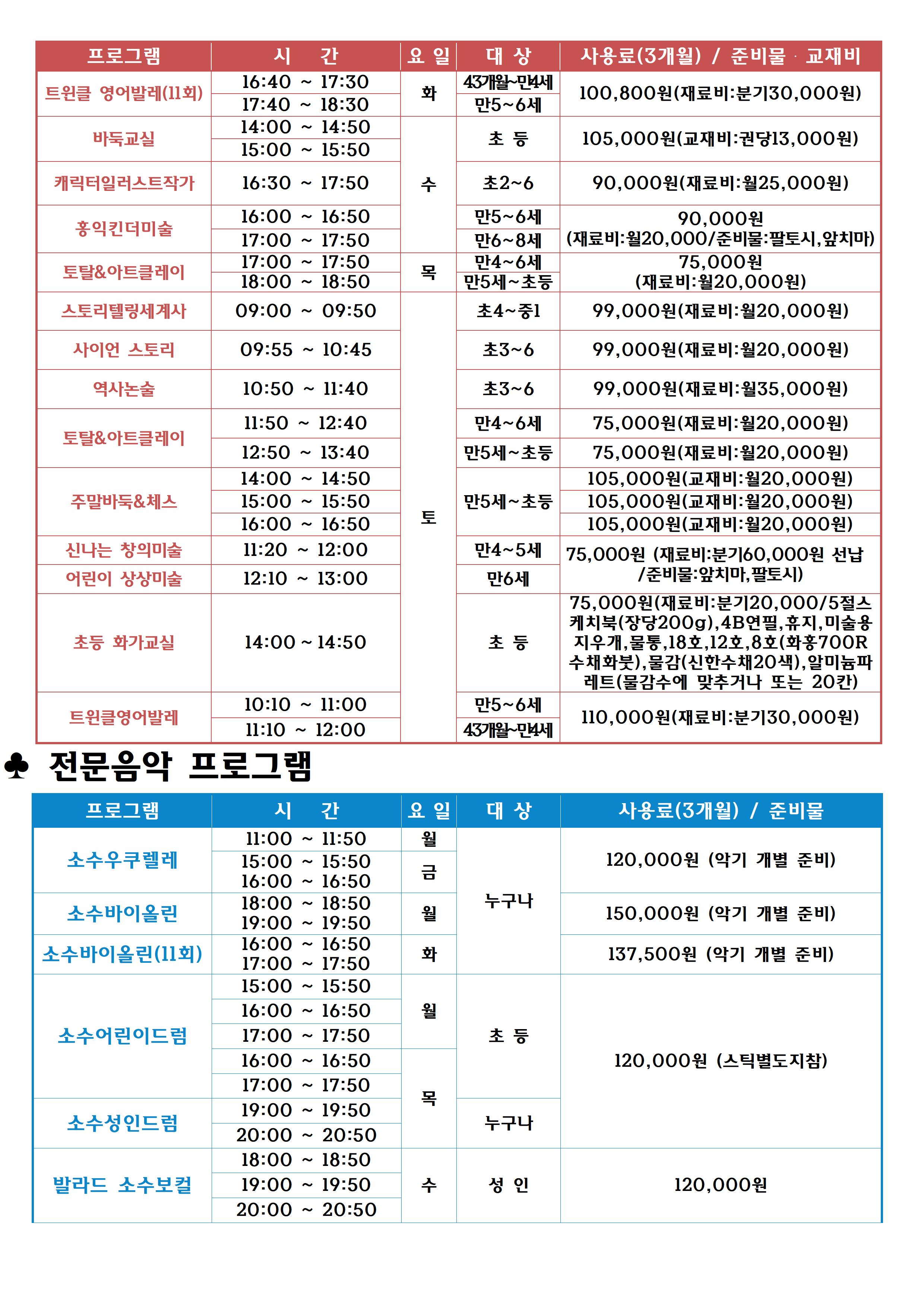 동작구민체육센터 동작구민체육센터 교육문화 여름학기(6~8월)회원모집 안내 작성자 사당문화회관 작성일 2023년 4월 25일 18시 30분 4초 조회 891 2023 여름학기 홍보물(a0)최종 23.4001.jpg [ Size : 981.43KB , Down : 262 ] 미리보기 다운로드 2023 여름학기 홍보물(a0)최종 23.4002.jpg [ Size : 976.44KB , Down : 248 ] 미리보기 다운로드 2023 여름학기 홍보물(a0)최종 23.4003.jpg [ Size : 742.91KB , Down : 220 ] 미리보기 다운로드 목록보기