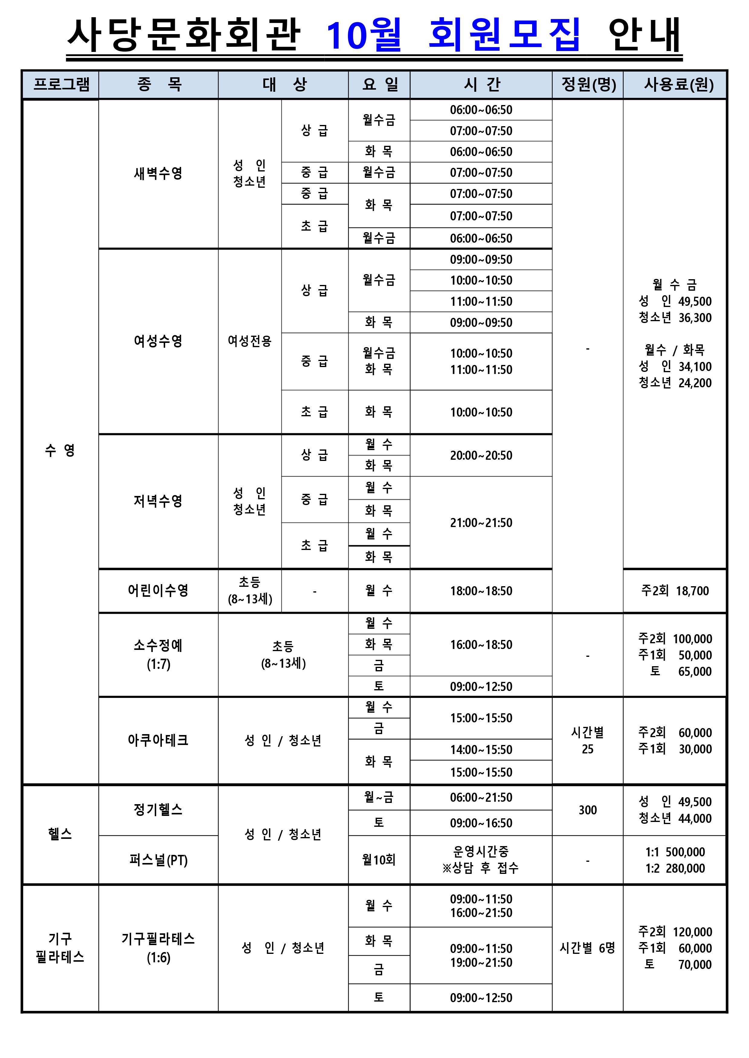 사당문화회관 사당문화회관 10월 프로그램 안내 작성자 동작구민체육센터 작성일 2022년 9월 14일 14시 46분 17초 조회 1,041 0001.jpg [ Size : 612.75KB , Down : 654 ] 미리보기 다운로드 0002.jpg [ Size : 561.54KB , Down : 671 ] 미리보기 다운로드 목록보기